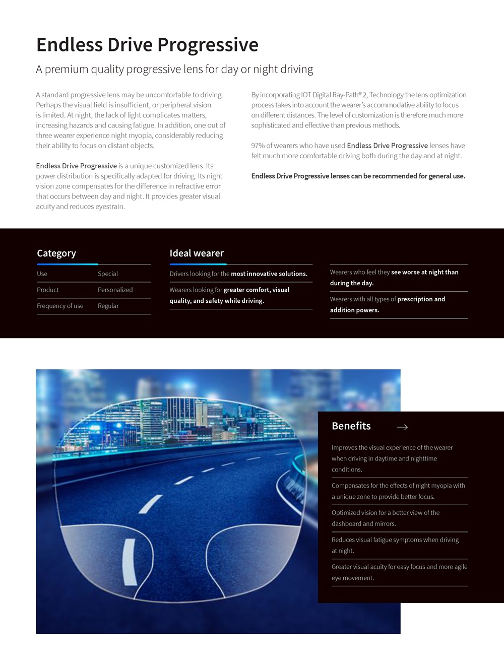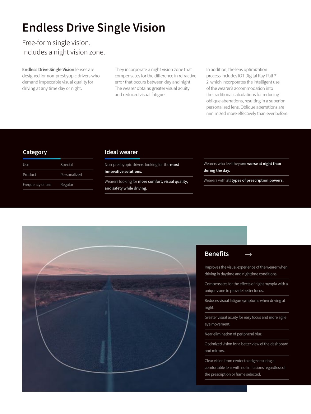provide high visual comfort, Improvement in false myopia, Avoid ghost reflections,